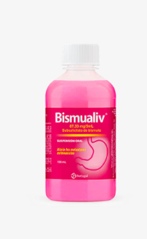 Bismualiv 87.33mg/5ml (subsacilato de bismuto) jarabe es un medicamento utilizado para aliviar trastornos digestivos.