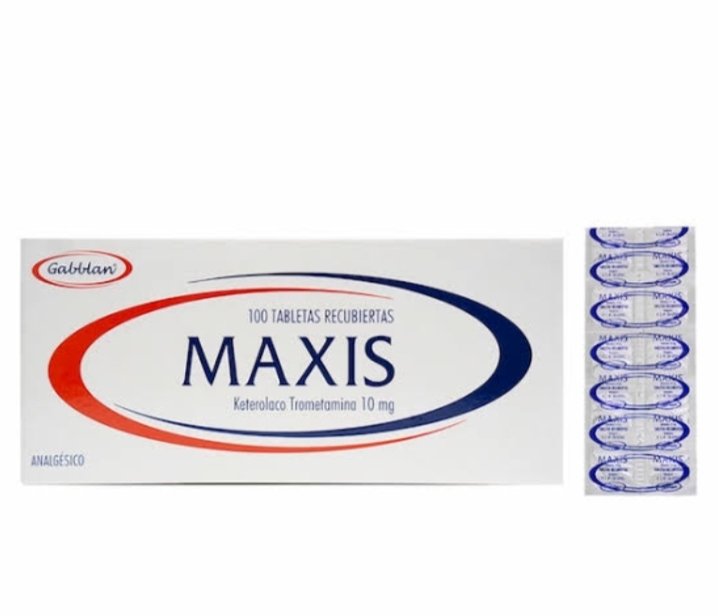 Maxis (Ketorolaco 10mg) es un analgésico y antiinflamatorio no esteroideo (AINE) indicado para el alivio del dolor moderado a severo, especialmente en casos de dolores musculares, articulares, posoperatorios o dentales.