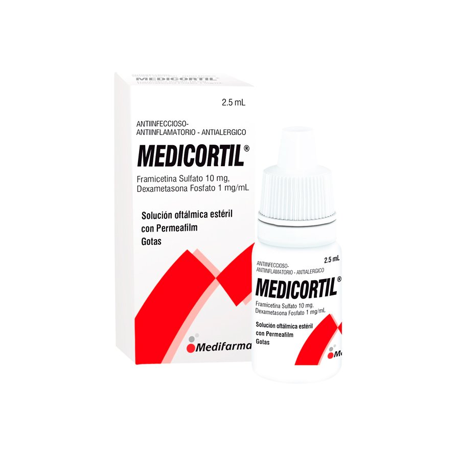 Medicortil (Framicetina 10mg + Dexametasona 1mg/ml) Gotas oftálmicas – Frasco 2.5ml