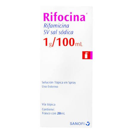Rifocina Spray 20 ml (Rifampicina) es un antibiótico tópico indicado para la prevención y tratamiento de infecciones cutáneas producidas por bacterias sensibles. Su formulación en spray permite una aplicación higiénica, uniforme y sin contacto directo, ideal para heridas, quemaduras y lesiones superficiales.
