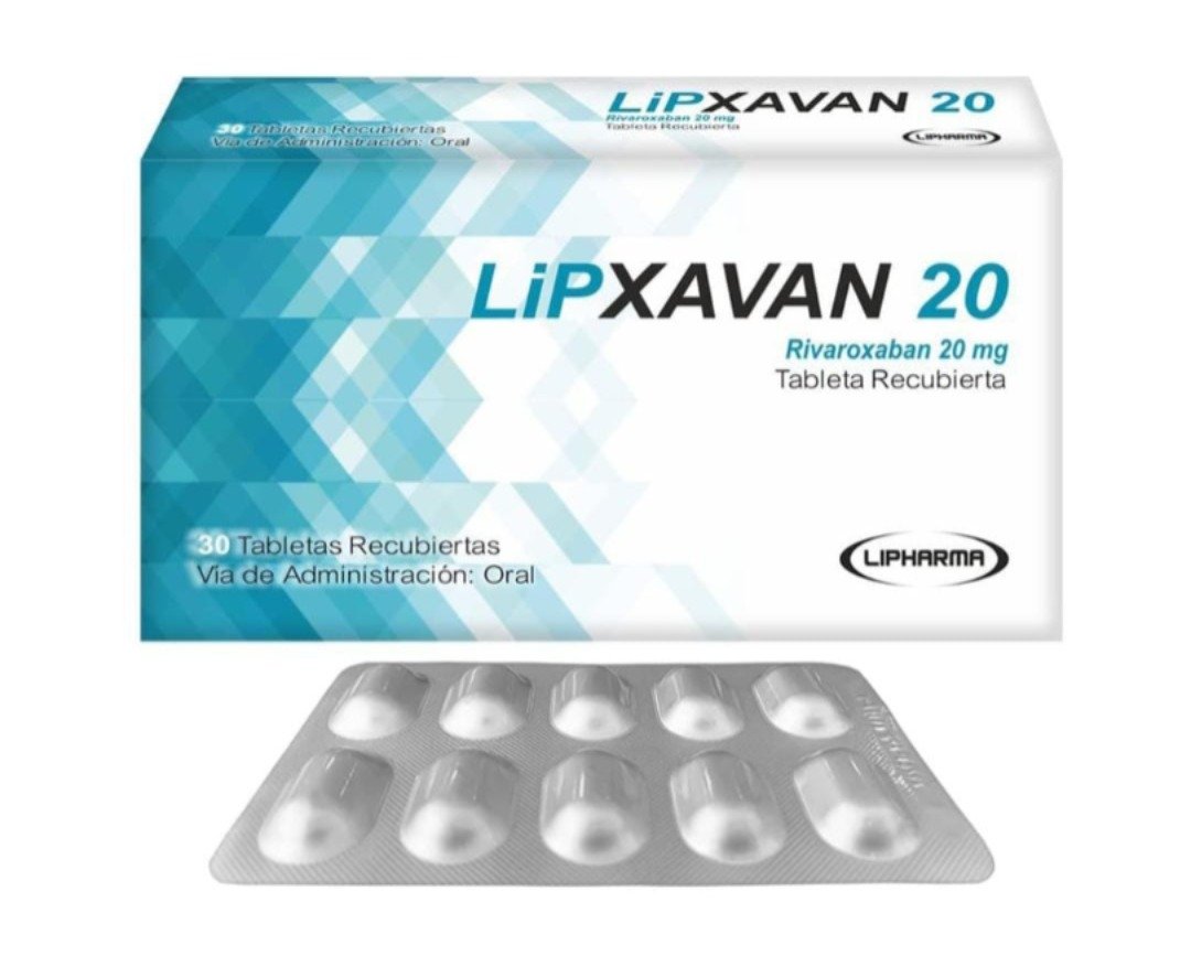 Lipxavan 20 mg (Rivaroxabán) es un anticoagulante oral de acción directa, perteneciente al grupo de los inhibidores del factor Xa, indicado para la prevención y tratamiento de eventos tromboembólicos venosos y arteriales, como trombosis venosa profunda (TVP), embolia pulmonar (EP) y accidente cerebrovascular (ACV) en pacientes con fibrilación auricular no valvular.
